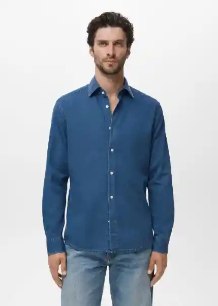 100% Algodón Cierre de Botones en la Parte Delantera Cuello Camisero el Modelo Mide 190 cm y Lleva Una Talla M Manga Larga Con Puños Abotonados Regular Fit Tejido Chambray de Algodón - 17095149_Tm.