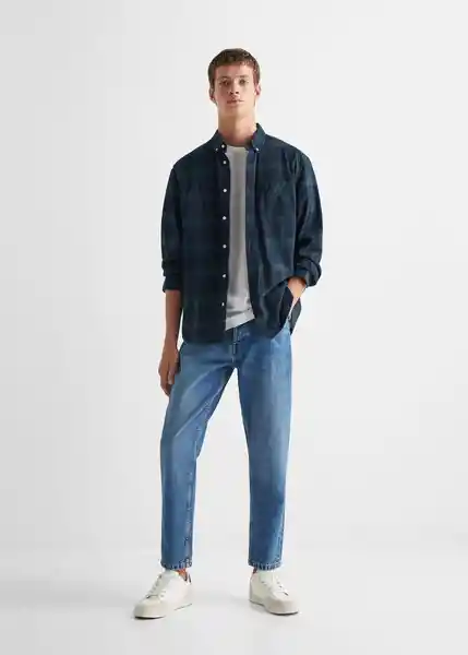 100% Algodón Bolsillo en el Pecho Cierre de Botones Cierre Delantero Cuello Camisero Estampado de Cuadros Manga Larga Puños Abotonados Regular Fit - 57055985_40