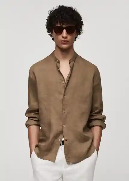 Bajo Redondeado, Cierre de Botones en la Parte Delantera, Classic Fit, Cuello Mao, el Modelo Mide 185 cm y Lleva Una Talla M, Manga Larga Con Puños Abotonados, Tejido 100% de Lino, Tejido Ligero - 77010344_08.