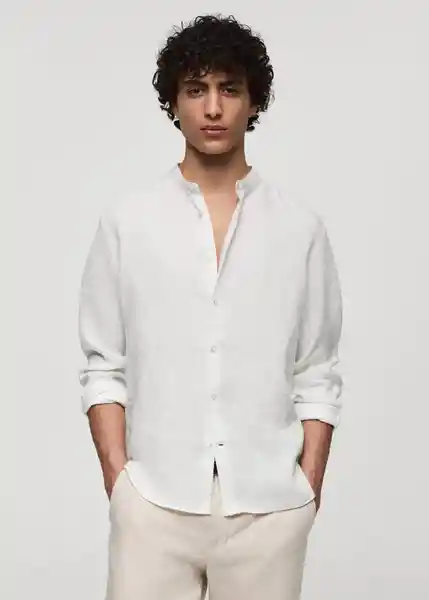 Bajo Redondeado, Cierre de Botones en la Parte Delantera, Classic Fit, Cuello Mao, el Modelo Mide 185 cm y Lleva Una Talla M, Manga Larga Con Puños Abotonados, Tejido 100% de Lino, Tejido Ligero - 77020342_01.