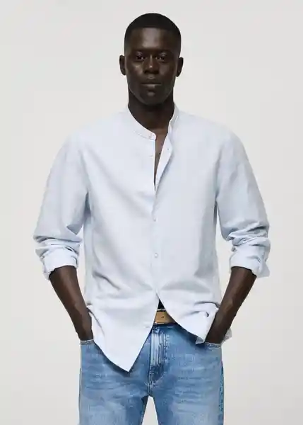 Bajo Redondeado, Cierre de Botones en la Parte Delantera, Classic Fit, Cuello Mao, el Modelo Mide 185 cm y Lleva Una Talla M, Manga Larga Con Puños Abotonados, Tejido Ligero, Tejido Mezcla de Lino y Algodón - 77040584_50.