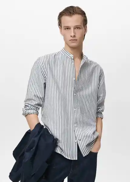 Bajo Redondeado Cierre Delantero Con Botones Classic Fit Cuello Mao Detalle de Pinzas Traseras el Modelo Mide 190 cm y Lleva Una Talla M Puños Camiseros Abotonados Tejido Mezcla de Lino y Algodón - 87025935_56.