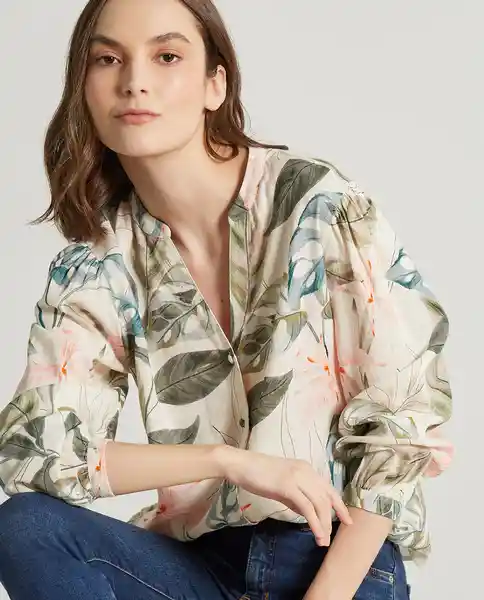 Camisa Estampada de Botones Para Mujer Sku 7706455056984 Ean 619D001A00948 Color Crudo Puro Claro.