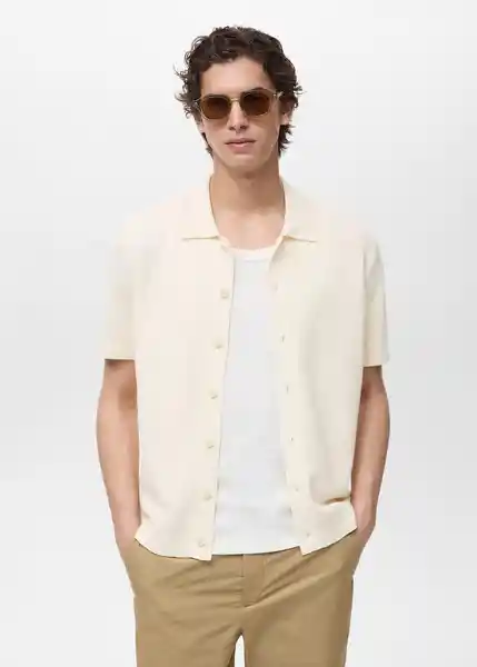 Cierre Delantero Con Botones Cuello Camisero el Modelo Mide 190 cm y Lleva Una Talla M Mangas y Bajo Acabados en Canalé Straight Fit Tejido de Punto Fino Tejido Mezcla de Algodón - 87049210_04.