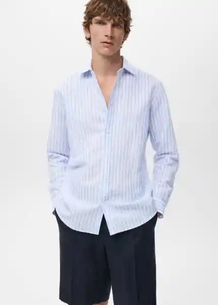 Cierre de Botones en la Parte Delantera Cuello Camisero el Modelo Mide 185 cm y Lleva Una Talla M Estampado Rayas Verticales Manga Larga Con Puños Abotonados Regular Fit Tejido Mezcla de Modal y Lino - 17051290_52.