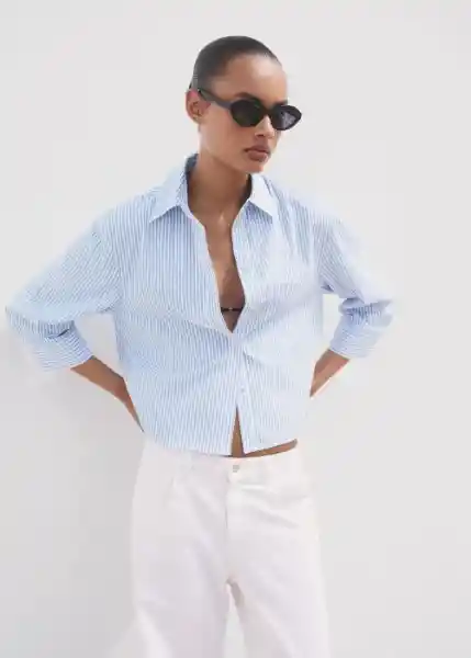 Bolsillo en el Pecho Cierre Delantero Con Botones Cuello Camisero Detalle de Strass Diseño Crop Diseño de Rayas Diseño Recto Manga Tres Cuartos - 17092927_52.