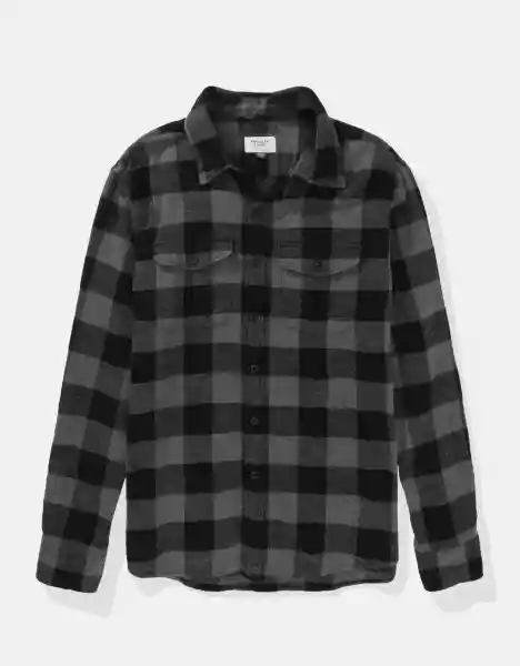 Franela Súper Suave Cuello Clásico Manga Larga Botones en el Frente Patrón de Cuadros.
