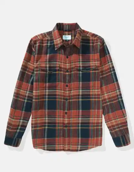 Franela Súper Suave Cuello Clásico Manga Larga Botones en el Frente Patrón de Cuadros.