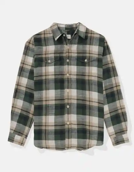 Franela Súper Suave Cuello Clásico Manga Larga Botones en el Frente Patrón de Cuadros.