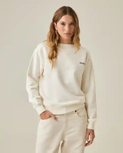 Femenino. Silueta Amplia Cuello Redondo en Rib Escote en V en Algodón 99% y Elastano 1%. Burda Sin Perchar. Hombro Rodado. Puños y Fajón en Rib. Bordado en Frente y Espalda. Gráfico de Espalda en Aplique y Chenil. Tela Suave. Construcción Con Chenil Táctil. Silueta Amplia Oversize. Ean- 781H000Cru110606 Plu- 1111133235296.
