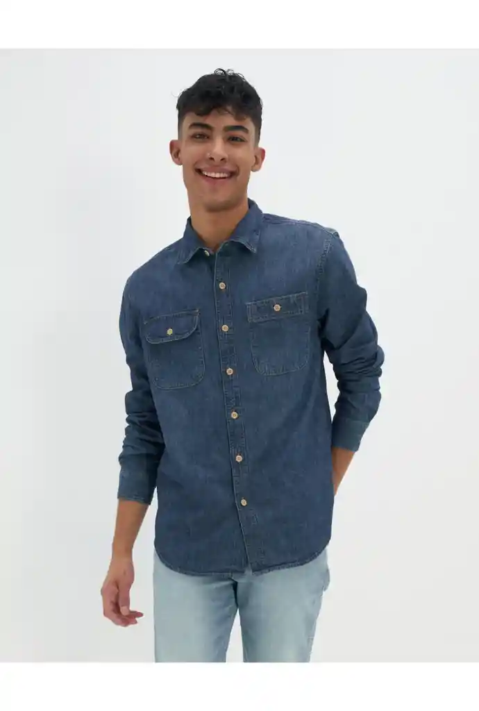Hecho de Denim Lavado Suave Perilla de Botones Completa Dos Bolsillos en el Pecho Con Cierre de Botón Ruedo Con Recogido Style: 0153-2329 100% Algodón.