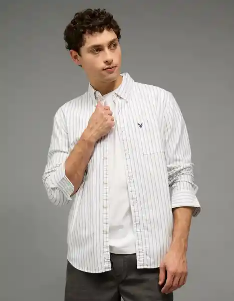 Tela de Algodón Oxford Suave Cuello Con Cuello Mangas Largas Con Puños Abotonados Parte Frontal Con Botones y Logo de Águila Bordado.