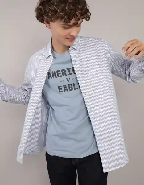 Tela de Algodón Oxford Suave Cuello Con Cuello Mangas Largas Con Puños Abotonados Parte Frontal Con Botones y Logo de Águila Bordado.