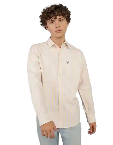 Tela de Algodón Oxford Suave Cuello Con Cuello Mangas Largas Con Puños Abotonados Parte Frontal Con Botones y Logo de Águila Bordado.