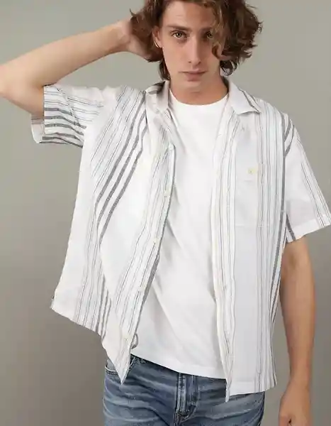 Fabricación Suave Patrón de Rayas Perilla Completa de Botón Bolsillo en el Frente Manga Corta