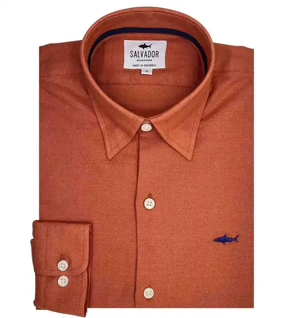 En Lino Manga Larga Regular Fit Tiburón Bordado. Cierre de Botones.