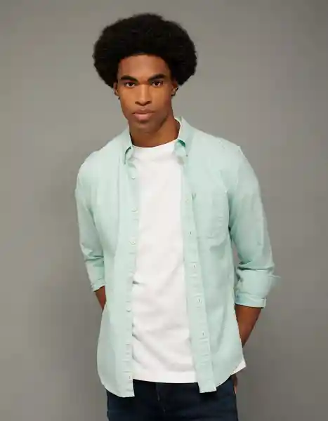 Tela de Algodón Oxford Suave Cuello Con Cuello Mangas Largas Con Puños Abotonados Parte Frontal Con Botones y Logo de Águila Bordado.