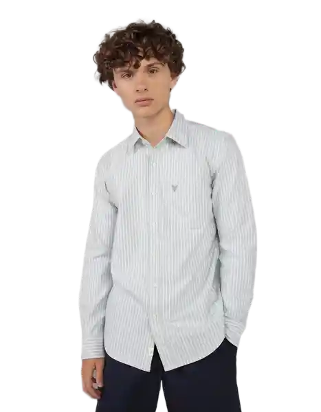 Tela de Algodón Oxford Suave Cuello Con Cuello Mangas Largas Con Puños Abotonados Parte Frontal Con Botones y Logo de Águila Bordado.