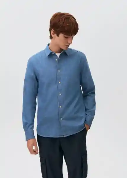 Cierre Delantero Con Botones Cuello Camisero Diseño Recto Efecto Denim Manga Larga Con Puños Abotonados Tejido 100% Algodón - 17032917_Tm.