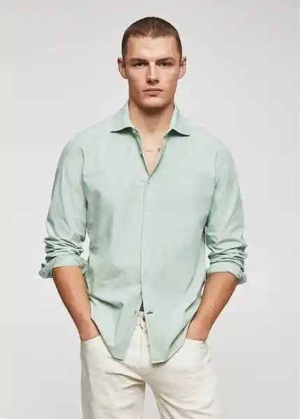 100% Algodón Cierre de Botones en la Parte Delantera Cuello Clásico Manga Larga Slim Fit Tejido Ligero - 47024382_45.