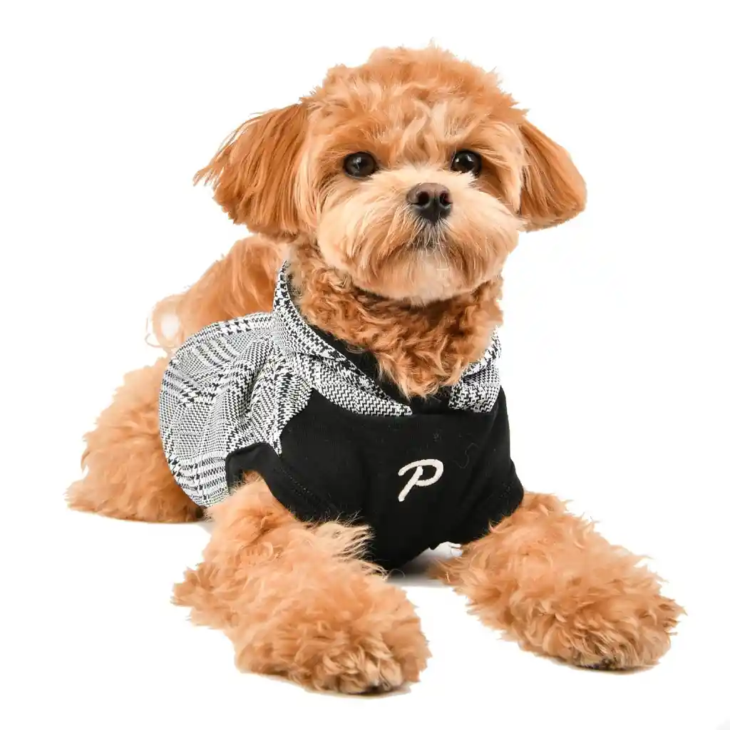 La camisa para perros con capucha Keegan de Puppia reúne funcionalidad y estilo para lograr un estilo genial! Esta camiseta sin mangas con capucha tiene mucho estilo. Orificio para la correa que facilita su uso en los paseos. El patrón de la camisa está hecho de 73% poliéster y 27% rayón con el pecho sólido 100% algodón. El colgante PUPPIA SMART TAG (solo código QR) está incluido para mantener a su mascota segura y en la corriente social.
