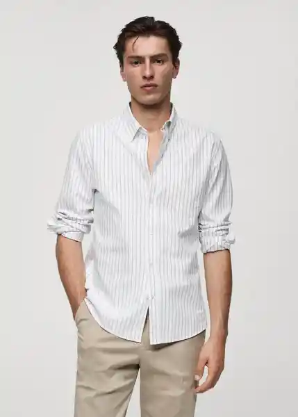 Bajo Redondeado, Bolsillo de Parche en el Pecho, Cierre Delantero Con Botones, Cuello Americano Abotonado, Diseño de Rayas Kodak, el Color Blanco y Verde es Exclusivo Online, el Modelo Mide 180 cm y Lleva Una Talla M, Manga Larga Con Puños Abotonados, Regular Fit, Tejido 100% Algodón - 77004444_01.