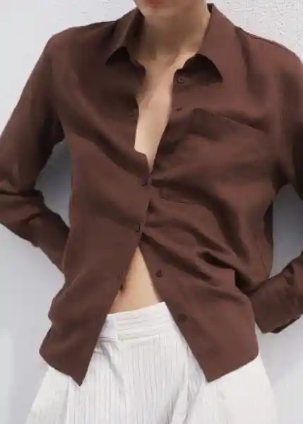 Bolsillo de Parche en el Pecho Cierre de Botones en la Parte Delantera Cuello Camisero Diseño Recto Manga Larga Con Puños Abotonados Tejido Mezcla de Lino y Lyocell - 17092548_32.