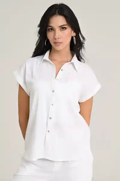 En Lino Fondo Entero Cuello y Perilla Completa de Botones Manga Corta.