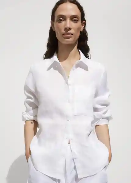 Bolsillo de Parche en la Parte Delantera, Cierre Delantero Con Botones, Cuello Camisero, Diseño Recto, Disponible Plus, Manga Larga Con Puños Abotonados, Tejido 100% de Lino - 77020348_02.
