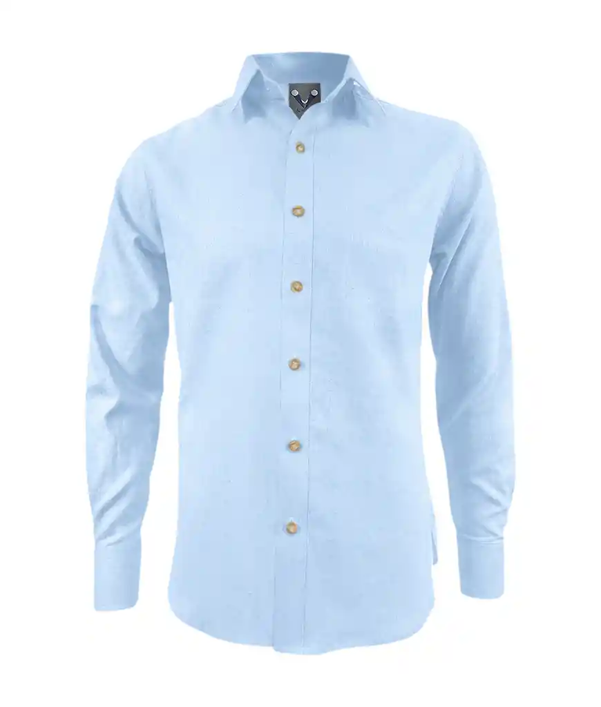 Camisa para hombre, estilo casual u ocasión en lino azul claro, con detalle de botones en contraste y abertura lateral, sin bolsillo, manga larga. Diseño también disponible en colores: Blanco, marfil, beige, café, verde hoja, vino tinto, azul oscuro y negro, fabricada en tallas estándar y también en tallas grandes. Detalles del Diseño: -Cuello: Inglés corto -Silueta: Slim fit – Desde la talla (3XL) la silueta es Recta -Material: 100% Lino – Con excelente caída -Color: Azul claro -Tipo de puño: En ángulo ¡Hecha en Colombia! En SON DOS fabricamos camisas personalizadas, desde la talla (XS) hasta la talla (10XL), para todas las ocasiones, para hombre y para mujer. ¡Fabricada exclusivamente para ti!