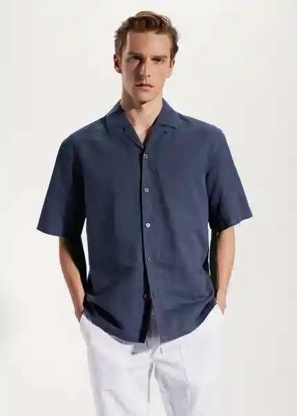 Bajo Recto Cierre Delantero Con Botones Cuello Bowling Con Cierre de Botón Diseño Estándar el Modelo Mide 190 cm y Lleva Una Talla M Manga Corta Regular Fit Tejido Ligero Tejido Mezcla de Lino y Algodón - 57020618_56.
