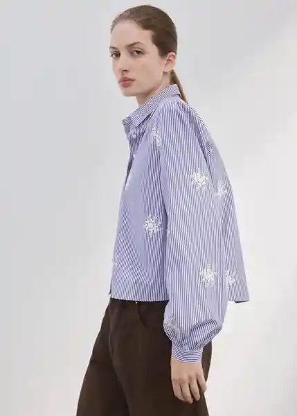 Cierre Delantero Con Botones Cuello Camisero Detalles Bordados Diseño Recto Estampado Rayas Manga Larga Con Puños Abotonados Tejido de Algodón - 27024093_50.
