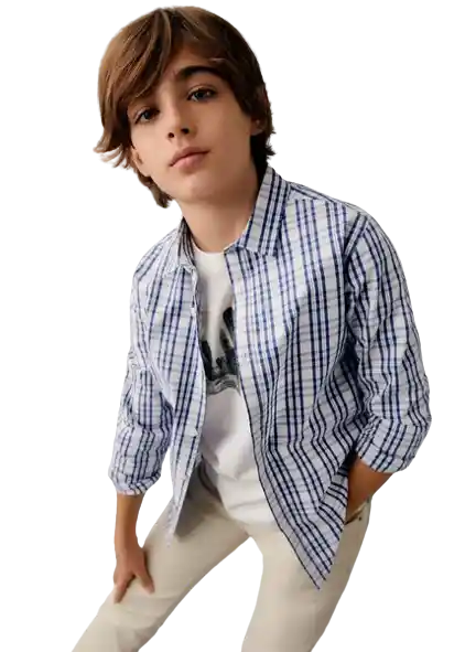 100% Algodón Cierre de Botones Cuello Camisero Estampado de Cuadros Manga Larga - 47054007_52.