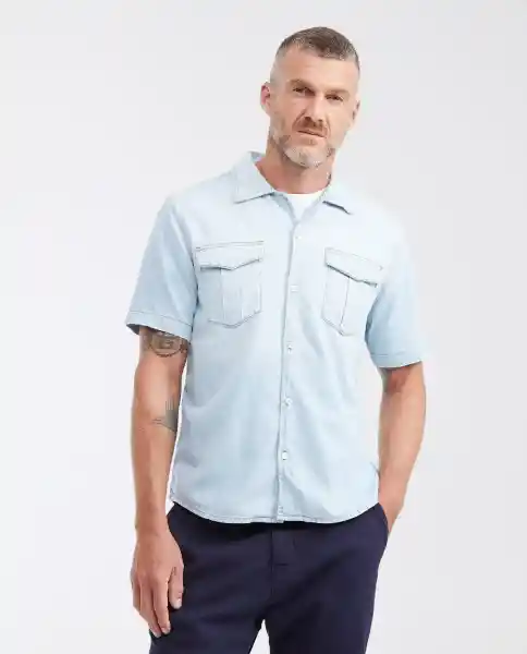 Para Hombre en Denim Slim Fit (Silueta Ajustada). Color Azul Tono Claro. Diseño Con Manga Corta Cuello Camisero Cierre Frontal Con Botones y Bolsillos de Parche Con Tapa. Elaborada en Denim Liviano 100% Algodón Non Stretch (0% de Elongación). Esta Prenda Hace Parte de la Historia Joy of Summer: Una Selección de Esenciales Para el Verano Con Bases Livianas Tonos Claros y Estampados Tropicales Que Evocan el Deseo de Viajar y Disfrutar Cada Día Como si Fuera Una Escapada. Esta Camisa en Denim es Básico Imprescindible Para Lograr un Estilo Fresco y Relajado. Cápsula Premium Denim: Telas Con Características Especiales y Denim de la Más Alta Calidad. Peso: 11.25Oz. Ean- 312 g001Azu154020 Plu- 1111133113617.