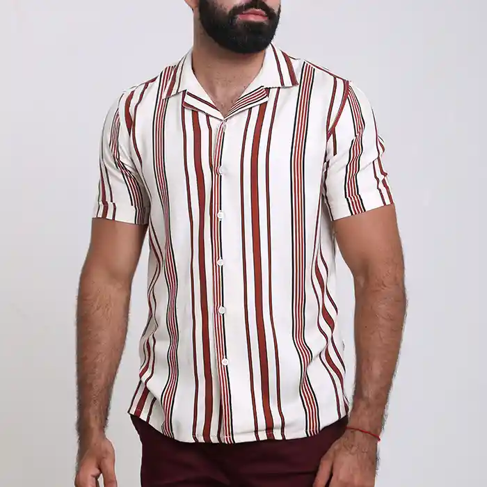 Camisa manga corta estampada en lineas color vino y azul oscuro cuello sport elaborada en textil liviano de alta calidad. Se convierte en una prenda ideal al momento de combinar el buen vestir con comodidad.