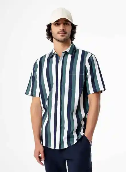 Camisa Manga Corta Hombre Rayas Verde Talla S