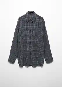 Cierre Delantero Con Botones Cuello Camisero Diseño Oversize Dos Bolsillos de Parche en el Pecho Estampado de Cuadros Manga Larga Con Puños Abotonados Tejido Mezcla de Lana - 67084062_52.