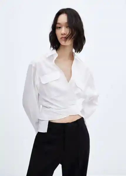 Cierre de Lazo en la Parte Posterior Cuello Camisero Cuello Cruzado Diseño Cruzado Dos Bolsillos de Solapa en la Parte Delantera Looks de Oficina Manga Larga Abotonada Tejido 100% Algodón - 57044784_01.