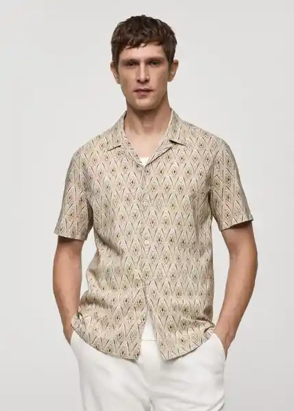 Bajo Recto, Cierre Delantero Con Botones, Cuello Bowling, Diseño Estampado, el Modelo Mide 185 cm y Lleva Una Talla M, Manga Corta, Regular Fit, Tejido Fluido, Tejido Mezcla de Algodón - 77030624_08.