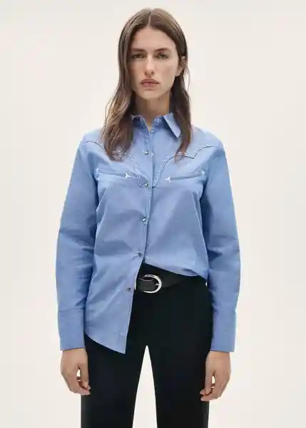 Bordado Decorativo, Cierre Delantero de Botones a Presión, Costuras Decorativas, Cuello Camisero, Diseño Recto, Manga Larga Con Puños Abotonados, Tachuelas Decorativas, Tejido Mezcla de Algodón - 77097684_52.