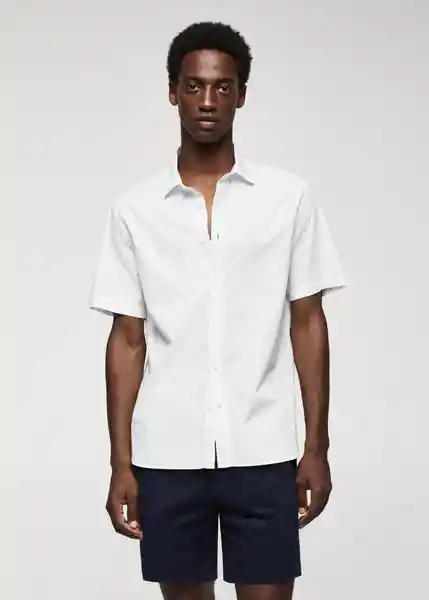 Bajo Redondeado Cierre Delantero Con Botones Cuello Camisero el Modelo Mide 190 cm y Lleva Una Talla M Estampado de Micro Flores Manga Corta Regular Fit Tejido de Popelín Confeccionado en Algodón 100% - 57025790_01.