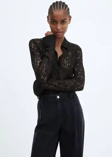 Cierre Delantero Con Botones Cuello Camisero Diseño Recto Manga Larga Tejido de Encaje Tejido Mezcla de Algodón - 57025979_99.