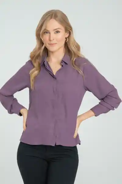 En Chifón Crepe Fondo Entero Cuello Camisero Perilla Completa Con Botones Manga Larga Con Botones en Puño.