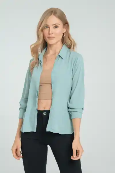 En Chifón Crepe Fondo Entero Cuello Camisero Perilla Completa Con Botones Manga Larga Con Botones en Puño.