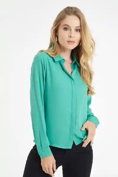 En Chifón Crepe Fondo Entero Cuello Camisero Perilla Completa Con Botones Manga Larga Con Botones en Puño.