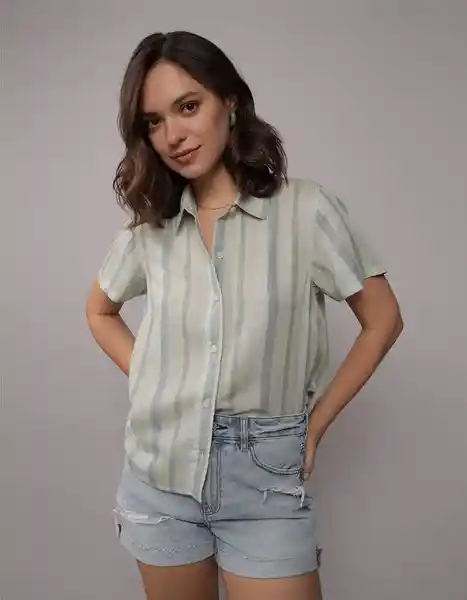 Hecho de Una Mezcla de Telas Ligeras Para Mayor Suavidad Con Cuello Manga Corta Botones en el Frente Patrón de Rayas