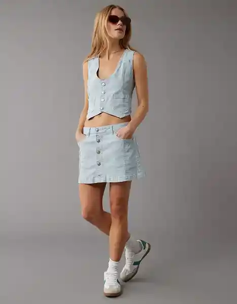 Hecho de Una Tela Ligera Para Mayor Suavidad Sin Mangas en Denim Con Botones en Frente