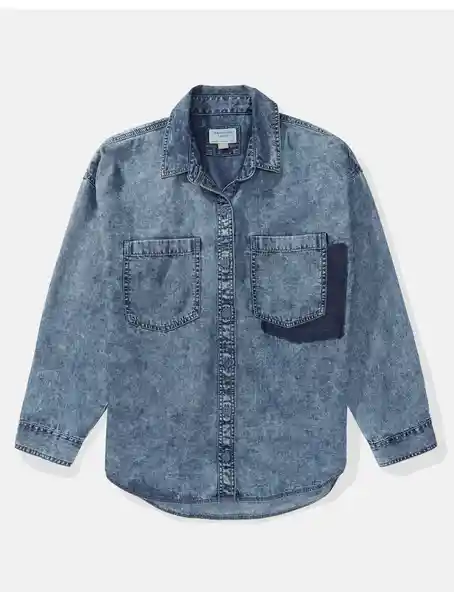 Denim Botones en el Frente Manga Larga Cuello Bolsillos.