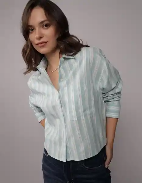Hecho de Una Tela Suave Cuello Clásico Manga Larga Botones en el Frente Bolsillo en el Frente Patrón de Rayas