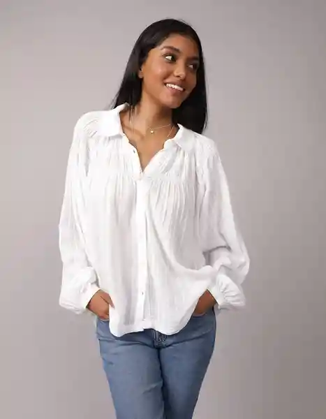 Algodón Súper Suave Collar Frente Abotonado Con Detalles Fruncidos.
